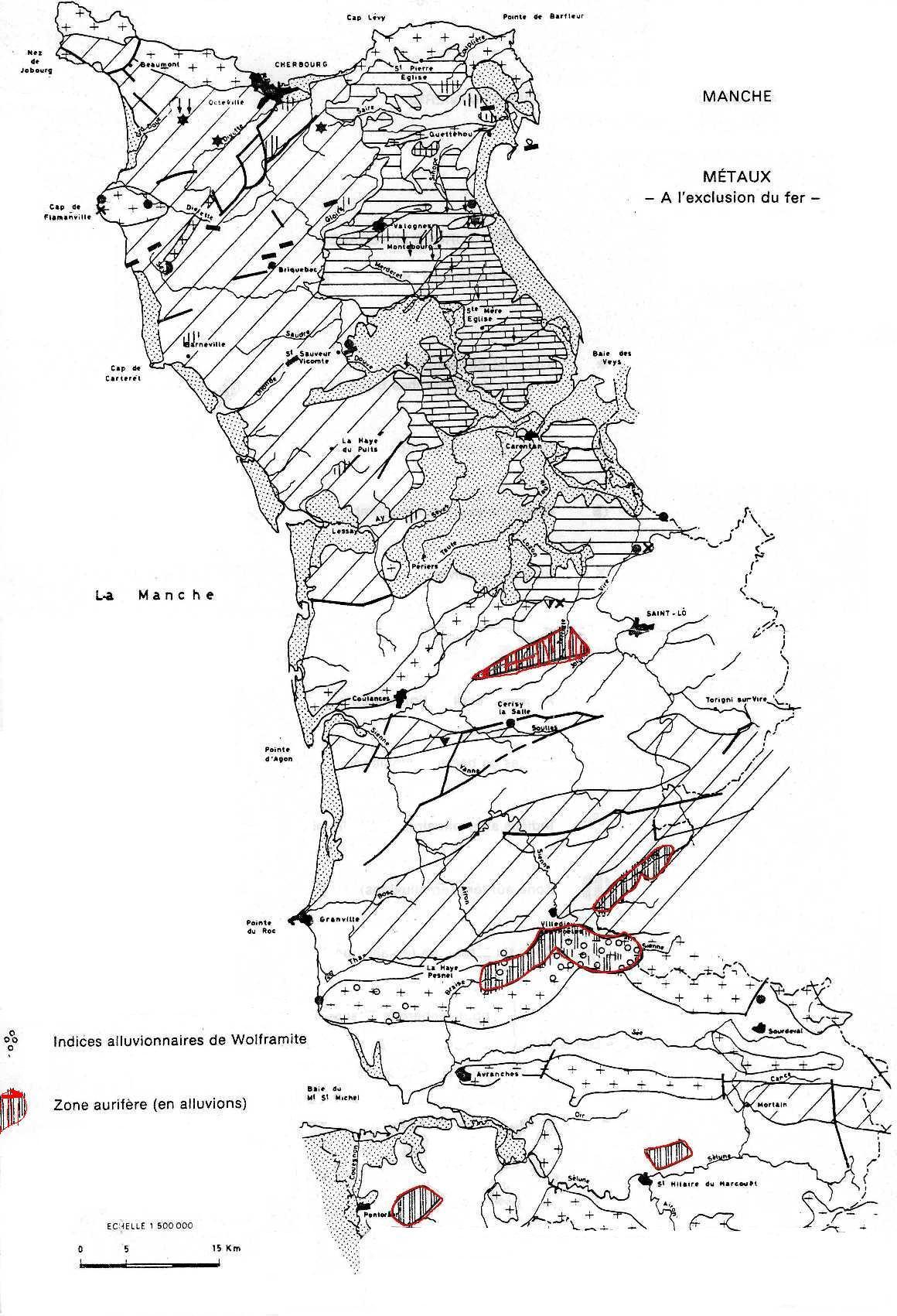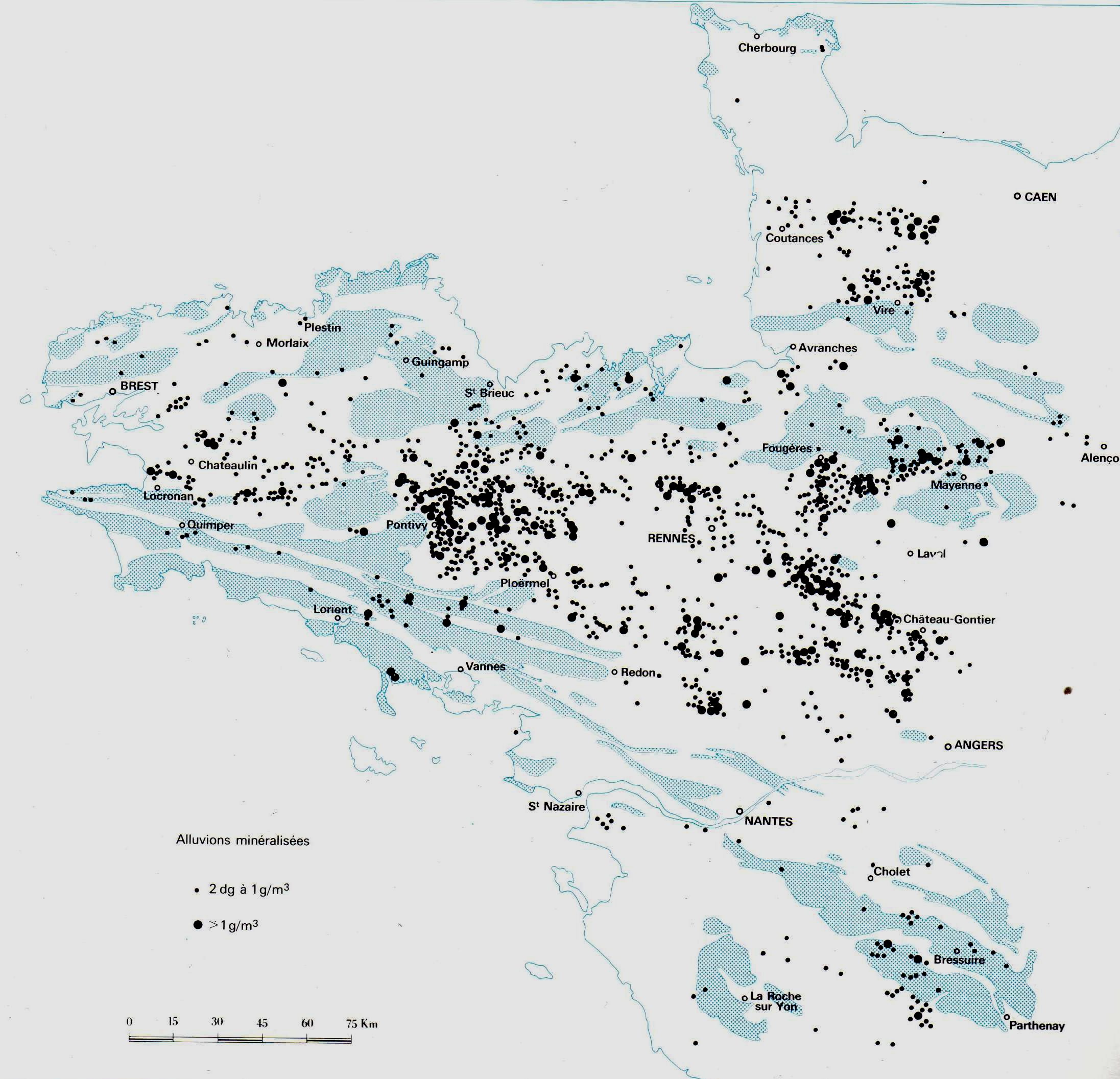 Deux cartes de prospections à la batée la 1ère est celle de Guigues et Devismes (BRGM 1969):
