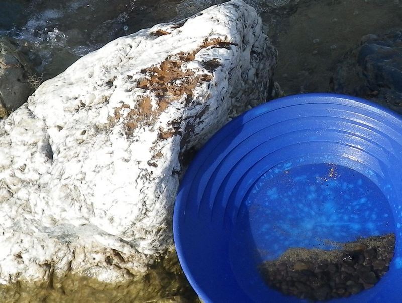 Le cocktail classique: beaucoup de quartz, un peu de sables lourds et de plombs de chasse avec quelques paillettes d'or au fond du pan.