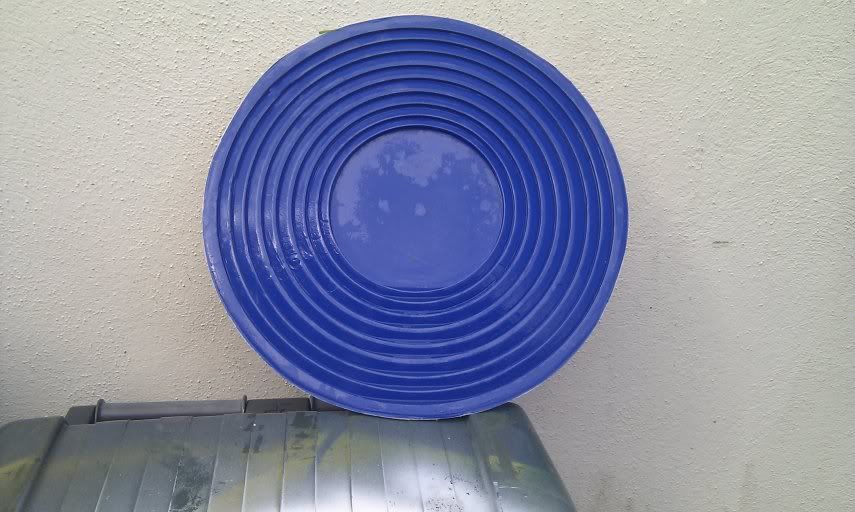 J'ai vu un semblable sur Youtube mais n'a pas pu trouver où acheter un et j'ai décidé d'en faire un. Il est similaire aux batee's utilisées dans les compétitions mais avec plus de riffles. Il sera très fait à utiliser, et est utilisé par plus rapidement en secouant la batee en le tournant dans un mouvement circulaire. L'or va baisser dans les riffles et le matériel plus léger sera va tourner à l'extérieur.
